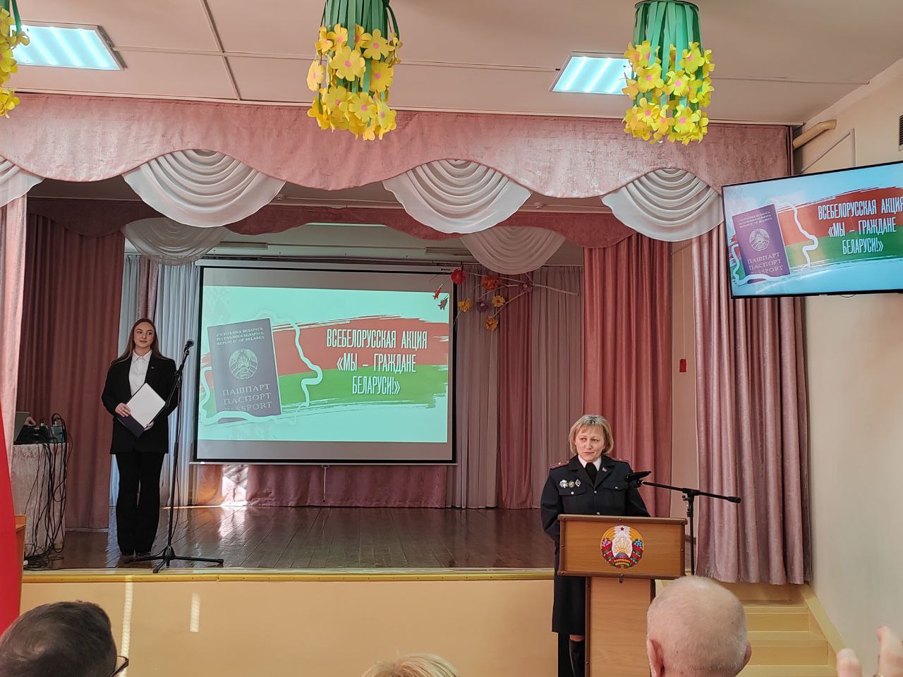 15 марта в День Конституции Республики Беларусь в центре творчества детей и молодежи «Эврика» состоялась торжественная церемония вручения паспортов учащимся школ и гимназий Жлобинского района. В рамках патриотической акции «Мы-граждане Беларуси» главный документ получила учащаяся 8 В класса Средней школы №7 Орлова Полина. А вручила главный документ ребятам председатель Жлобинского районного Совета депутатов Нехай Валентина Васильевна